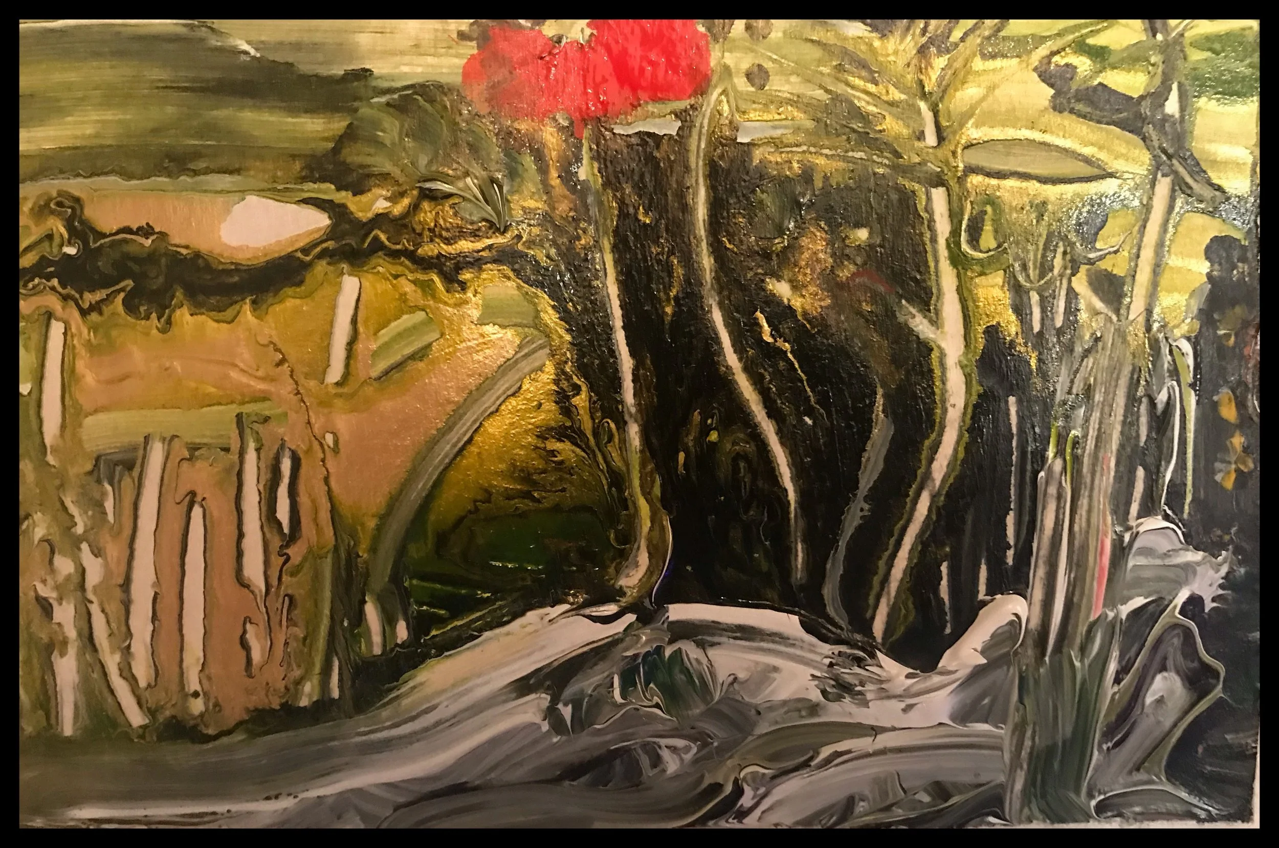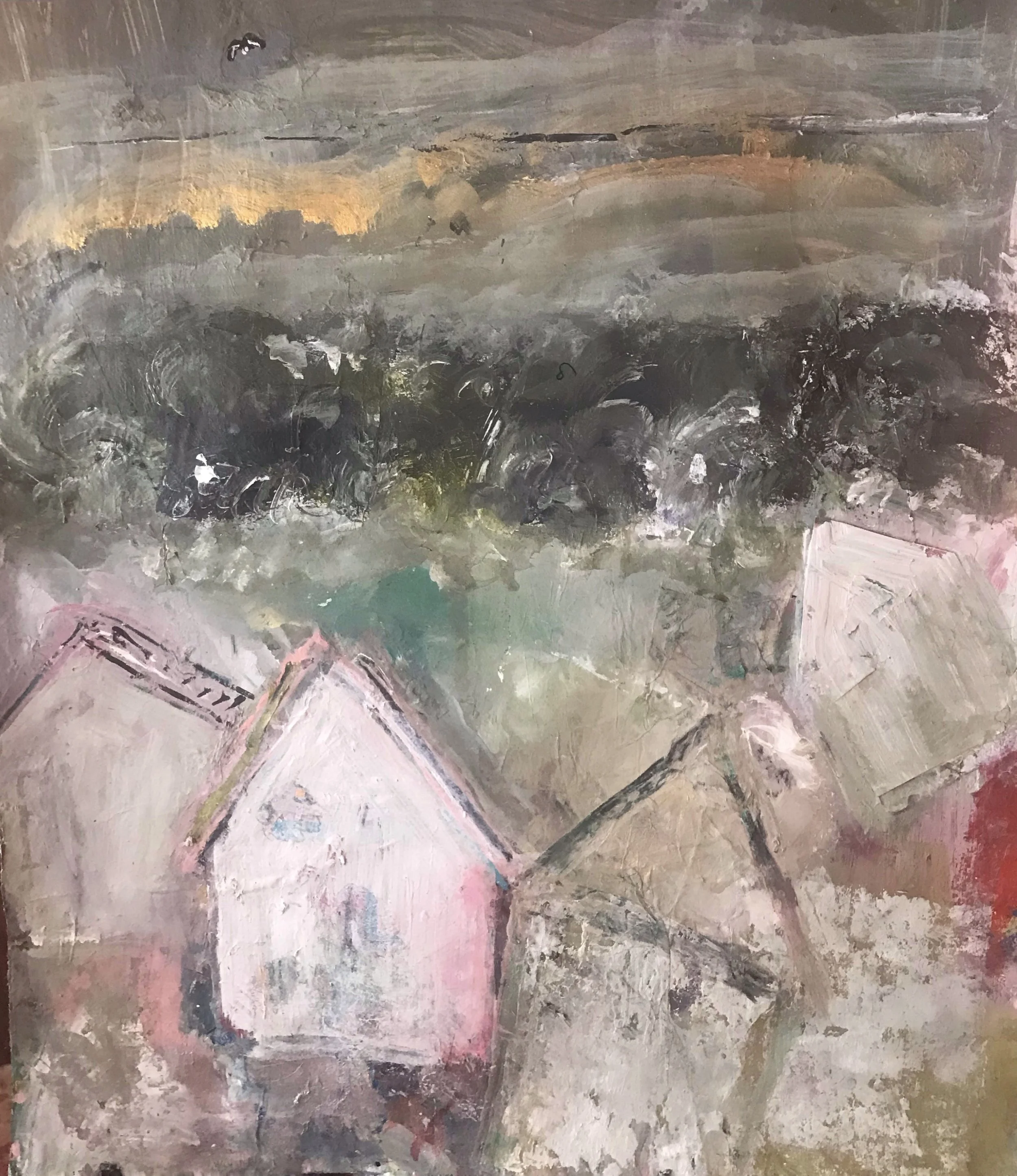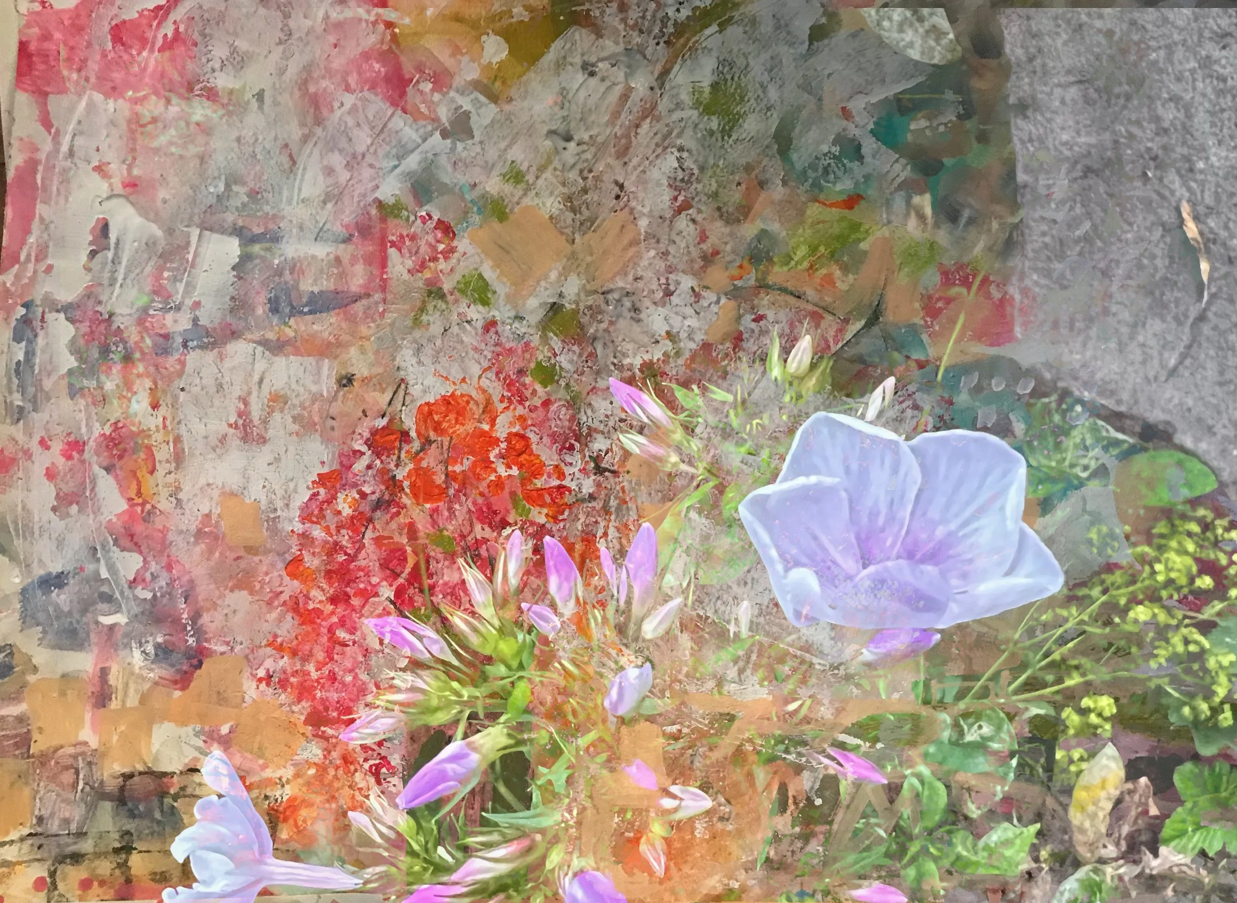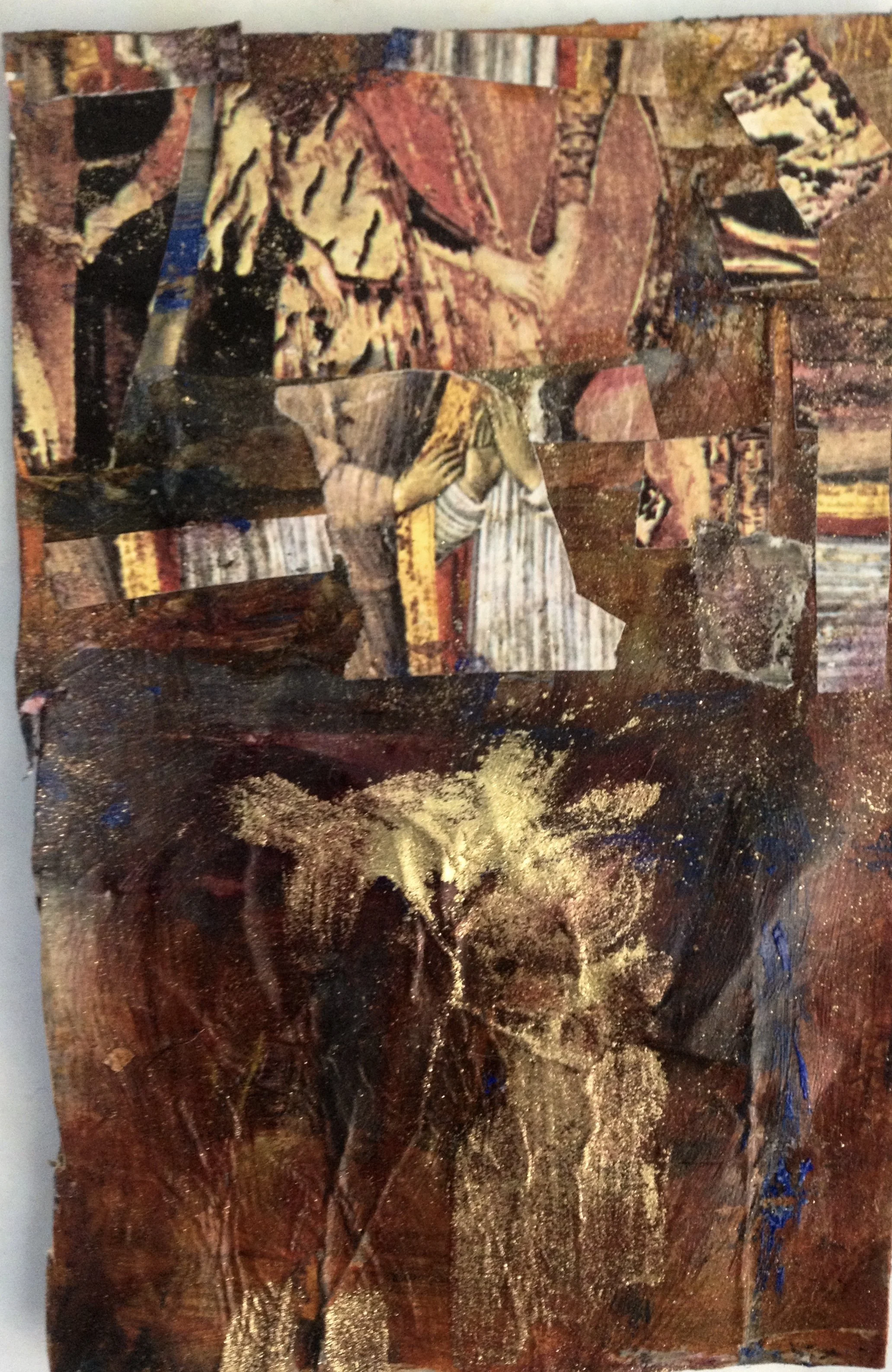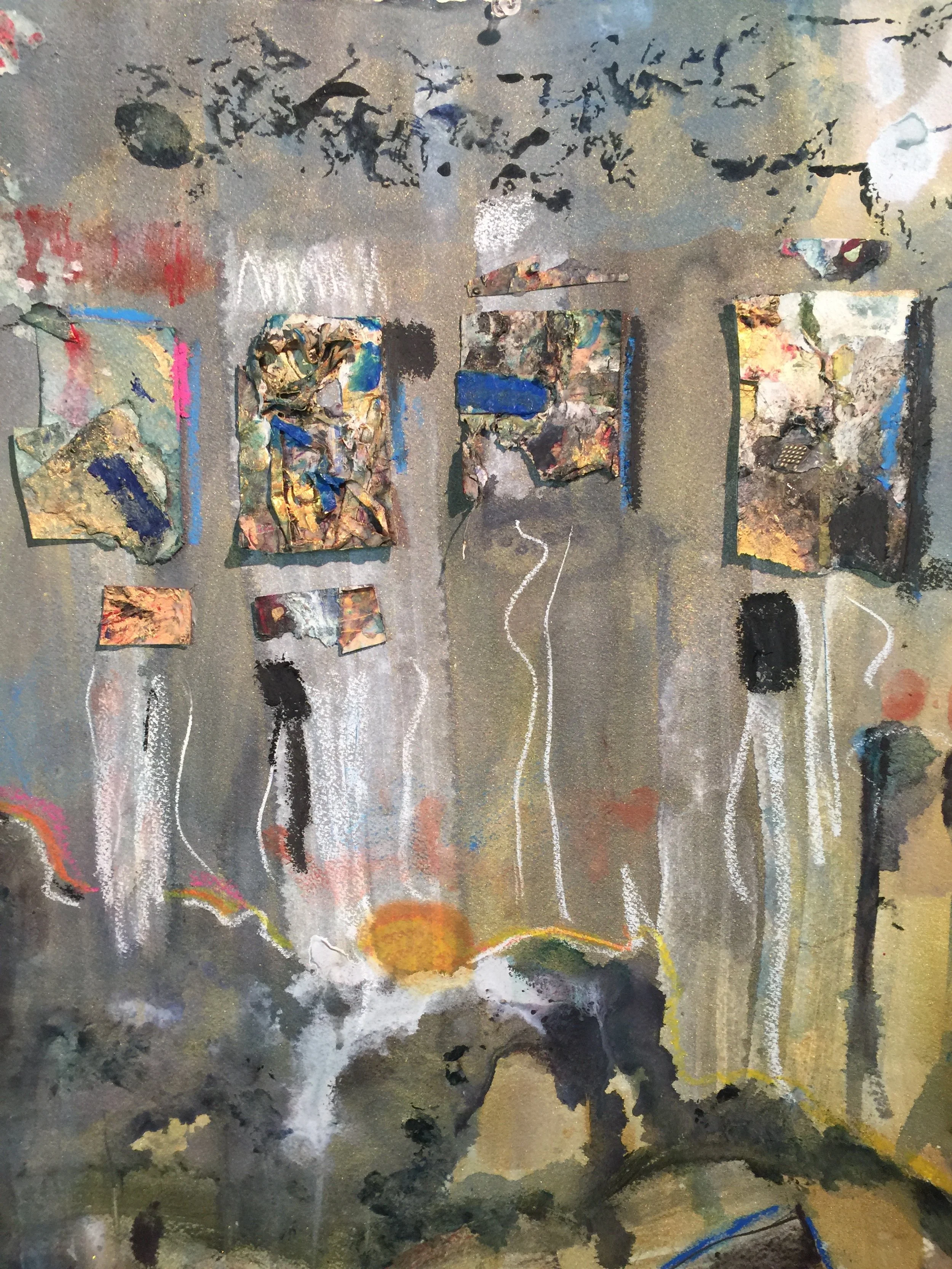 fabric, acrylic, gelliprint on canvas 20'X16"